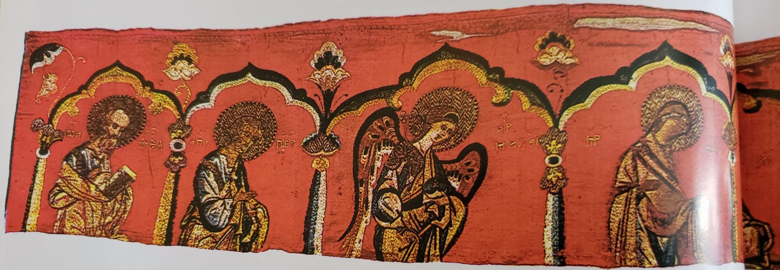The traditions of Russian and south-Slavic arts found a kind of combination in the podeai of Elena Voloshanka. Their very content, and the non-canonical nature of the podea with the religious procession attest to the princess’s direct influence in their creation. The depiction of living persons, including the donors of churches, icons and podeai, was especially widespread in south-Slavic art.